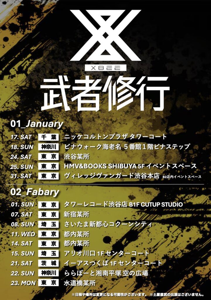 2026年1月17日(土)〜2月23日(月)にてX8EEの武者修行が決定いたしました!!